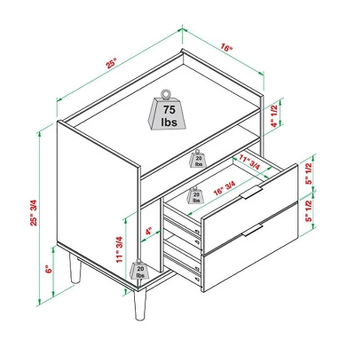 Mid-Century Modern Solid Wood 2 Drawer Nightstand – Saracina Home