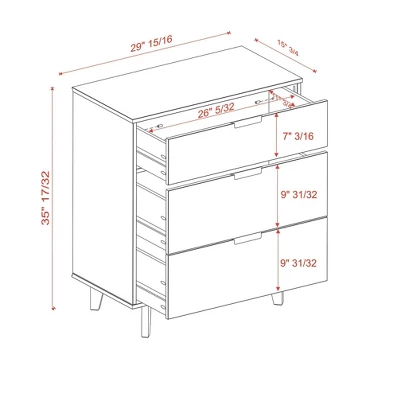 Organize your clothing and accessories in style with this 3-drawer dresser from Saracina Home. With storage deep drawers, this wood dresser provides plenty of storage area for small space living. Including three drawers, with the top one in a smaller composition for socks and accessories. Easily access your items with the unique, cutout handles that add to the mid century modern and transitional design style. With angled legs, this dresser is made of solid pine wood in a stained or painted finish.