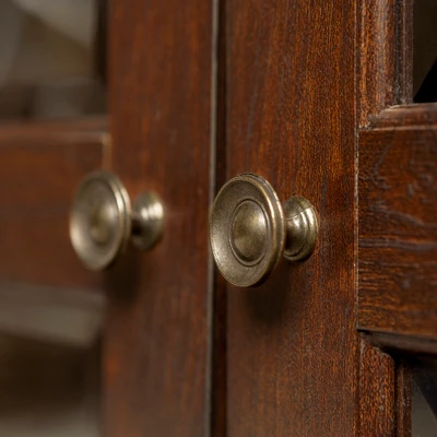 - Double doors with tempered, safety glass panes